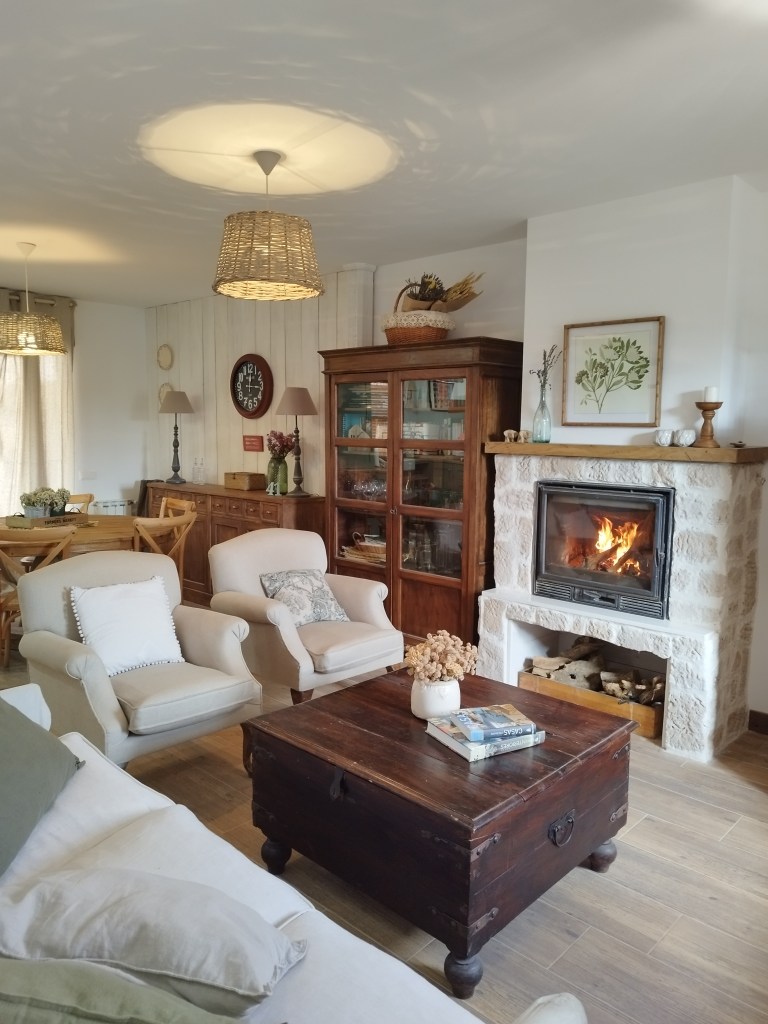 Disfruta de nuestra casita, un pareado situado en una urbanización a las afueras del pueblo. Dispone de todo lo necesario para pasar unos días inolvidables. En la planta baja os encontraréis con un salón comedor con chimenea y sofá cama muy acogedor y cocina americana para que el chef también pueda disfrutar del momento.